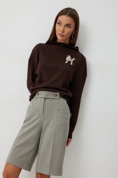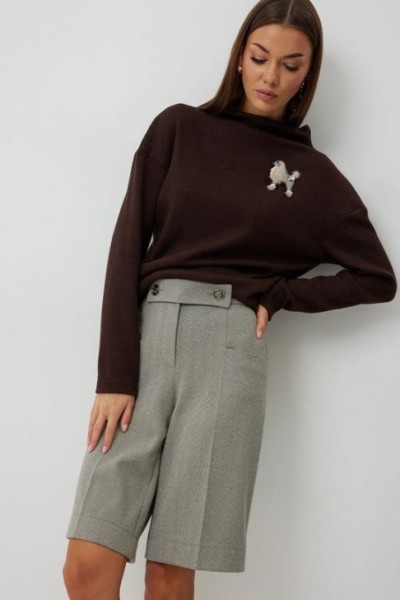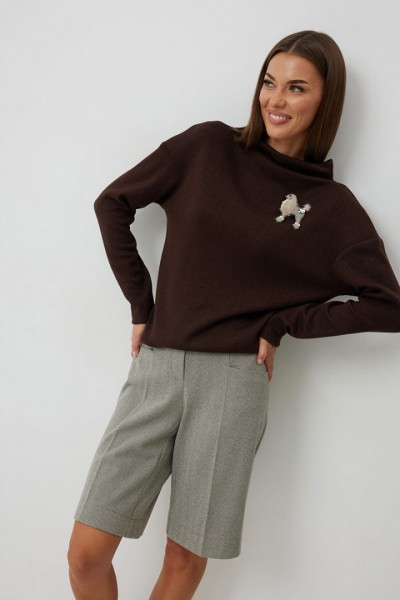 Блузон женский с цельнокроеной горловиной типа ""хомут"". Линия плеча и проймы спущены. Рукав втачной, одношовный. Блузон декорирован авторской брошью. Декоративные элементы и фурнитура могут отличаться от заявленных на фото. Цвет материала может отличаться по тону в зависимости от настроек вашего монитора!