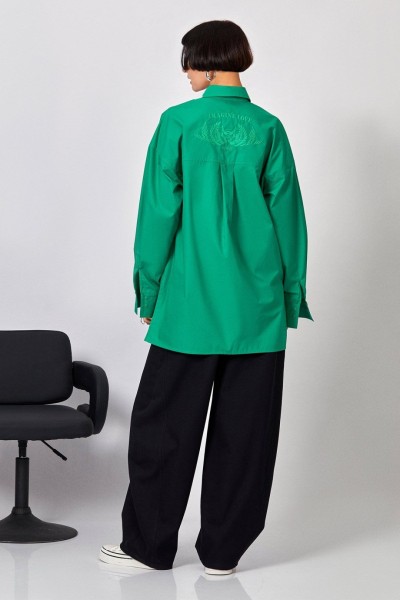 - на спинке переходящая на перед кокетка с вышивкой; от кокетки вниз — бантовая складка