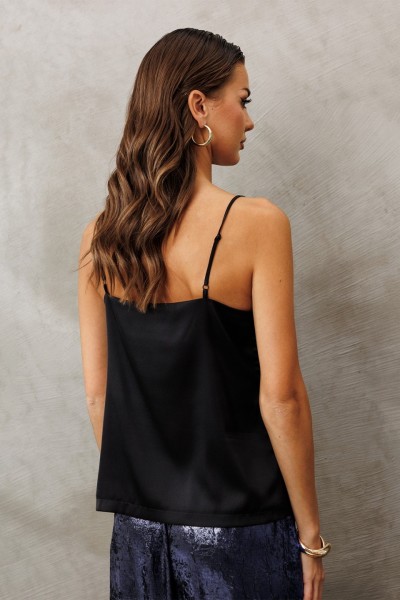 Отличайтесь изысканной элегантностью в этой атласной блузке-топе черного цвета. Модель прямого силуэта с регулируемыми бретелями позволяет настроить идеальный размер под вашу фигуру. Изюминка дизайна – это изображение пера, выполненное принтом на фронтальной части, что добавляет утонченность и оригинальность образу. Дополнительное украшение в виде бисерной вышивки придает блузке особенный шарм. V-образный вырез гармонично сочетается с широкой обтачкой и нагрудной вытачкой, подчеркивая женственность силуэта. Эта блузка идеально подойдет для создания элегантного вечернего образа.