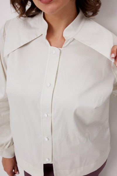 Блуза прямого кроя будет изюминкой вечернего наряда, и в то же время легко впишется в деловой гардероб, добавляя в образ нотку женственности и роскоши. Модель выполнена из приятного хлопка средней плотности, который идеально держит форму, при этом остаётся приятным к телу и комфортным в течение всего дня. Блуза прямого кроя с воротником стойкой и декоративным деталями в виде отложного воротника , на планке с застёжкой на петли- пуговицы, с нагрудными вытачками. Рукав втачной на манжете. Край манжета и планки имеет фигурную форму. Спинка на кокетке со встречной складкой. Для создания идеального образа предлагаем приобрести брюки арт. 6068, юбку арт. 5016, жилет арт. 7020.