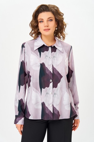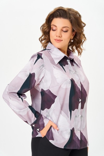 Блузка из вискозной ткани, прямого силуэта с центральной застёжкой на петли и декоративные пуговицы. Перед с нагрудными вытачками. Спинка цельная. Воротник рубашечного типа с отрезной стойкой. Рукав втачной одношовный с манжетой, которая застёгивается на две петли и пуговицы. Длина по спинке р.50,52,54 – 63 (+/- 1) см. Р.56,58,60 – 66 (+/-1) см, длина рукава – 66 (+/-1) см.