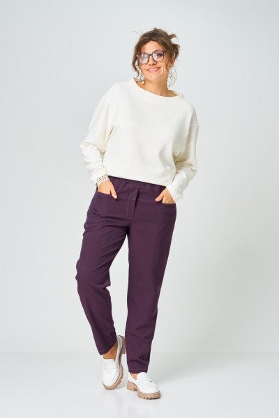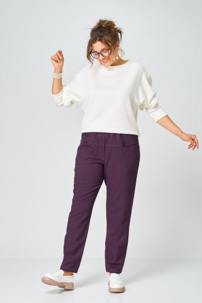 Эти стильные женские брюки выполнены в глубоким благородном оттенке тёмной сливы — цвете, который придаёт образу элегантность и легко сочетается как с базовыми, так и с яркими вещами гардероба.