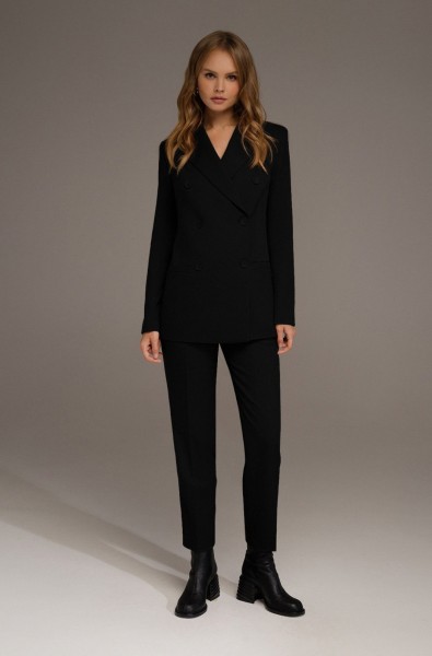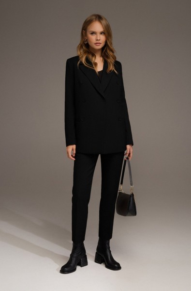 Детали: брюки со средней посадкой, притачной пояс со шлевками, передние половины с небольшими мягкими складками и заутюженными стрелками, застежка на молнию и пуговицу, боковые карманы.