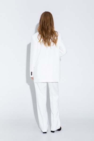 Детали: брюки с высокой посадкой, притачной пояс со шлевками, передние половины с небольшими мягкими складками и заутюженными стрелками, застежка на молнию и пуговицу, боковые карманы.