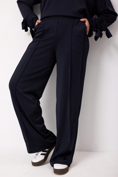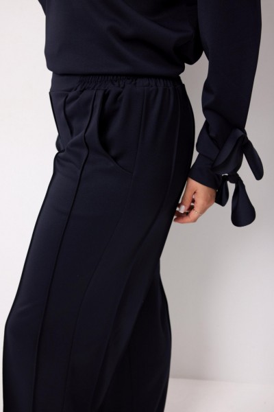 Трикотажные брюки из струящегося тактильно приятного трикотажа просто незаменимы в повседневном гардеробе модницы, которая ценит комфорт и свободу движений. Насыщенные модные цвета позволят создать множество сочетаний для Ваших образов. Брюки свободного кроя с притачным поясом на резинке с островком. Спереди и сзади расположены две застроченные стрелки. Это конструктивное решение позволяет сделать посадку идеальной и визуально удлинить ножки. По бокам брюк - карманы хулиганы. Низ обработан подгибкой.