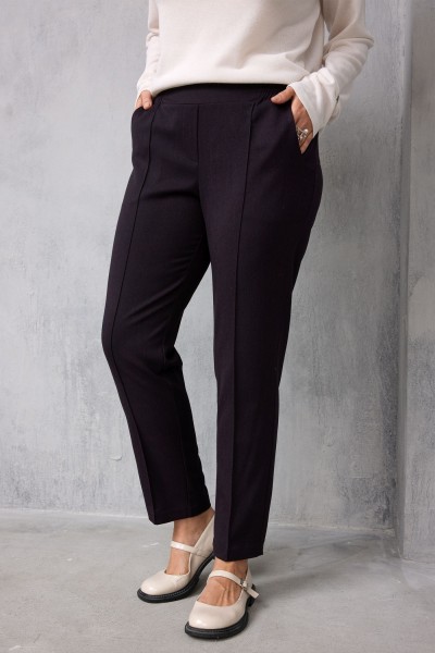 Классические брюки полуприлегающего силуэта выполнены из тактильно приятного слегка растяжимого текстиля, который Вам подарит невероятный комфорт! Красивая расцветка «чёрный баклажан» добавит образу изысканность и шарм. Модель прекрасно держит форму, стройнит и вытягивает силуэт, а застроченные стрелки визуально добавляют ножкам несколько сантиметров. Брюки с лёгкостью позволят создавать множество образов как элегантных – с блузой, жакетом и лодочками, так и спортивных - с любимой футболкой, худи и кедами.