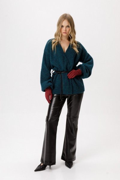 Брюки-клеш из экокожи с начесом.