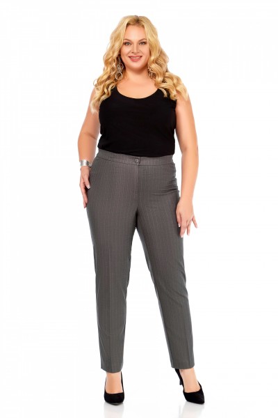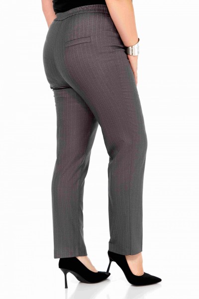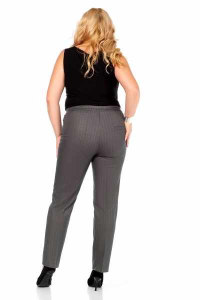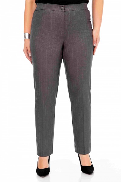 Брюки слегка заужены к низу, застежка на пуговицу и молнию, пояс с резинкой по спинке.