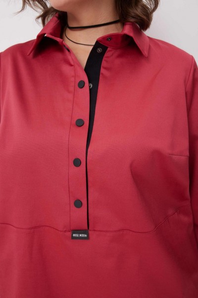 В этой модели Вы будете чувствовать себя комфортно и уверенно. Ткань с высоким содержанием хлопка очень приятна к телу, а свободный силуэт платья подарит комфорт и уверенность при каждом движении. Платье свободного силуэта с отложным воротником со стойкой. Передняя часть платья на притачной планке с застёжкой на кнопки, с нагрудными вытачками. Рукав втачной с манжетой, застёгивающейся на кнопку. Спинка на кокетке со встречной складкой. Низ изделия обработан в подгибку. Изюминкой модели является контрастная отделка планки и рукавов, а также нашивка с логотипом бренда на передней части платья. Эта модель платья универсальна: будет уместна на работе, позволит шикарно выглядеть на романтическом ужине, либо на отдыхе с друзьями.