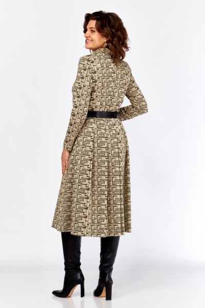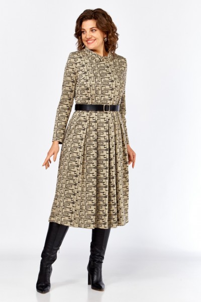 Платье женское полуприлегающего силуэта, по талии подрез со складками. Горловина округлая, воротник "хомут". Рукав втачной, длинный. В комплекте-пояс.