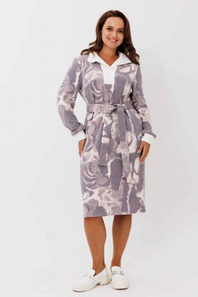 Платье из мягкого трикотажного полотна, женское, полуприлегающего силуэта. Длина миди. перед с нагрудными вытачками. спинка со средним швом, заканчивающимся шлицей. Рукава втачные, одношовные, с притачным манжетом по низу. горловина обработана втачной планкой и отрезной стойкой. Дополнят модель пояс.