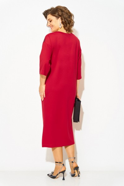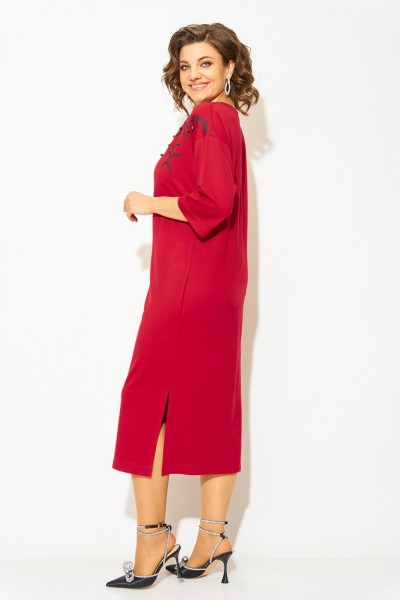 Трикотажное платье алого цвета подчеркнет Вашу женственность и добавит образу смелости! Материал, из которого выполнена модель - мягкий, комфортный и теплый! Силуэт платья прямого кроя, с рукавом длиной ¾-ти на спущенном плечевом поясе. Вырез горловины округлый, на мягкой планке. По бокам расположены разрезы на свободу движения. Изюминка данной модели- очаровательная печать накат с мерцающим эффектом украшенная бусинами и жемчугом. Такое платье можно носить с высокими сапогами, батальонами и даже с туфлями на каблуке. Добавьте к нему крупную бижутерию, кожаный ремень или перчатки - и создайте по истине элегантный и стильный образ! Длина по спинке – 115 см, рукав – 35 см.