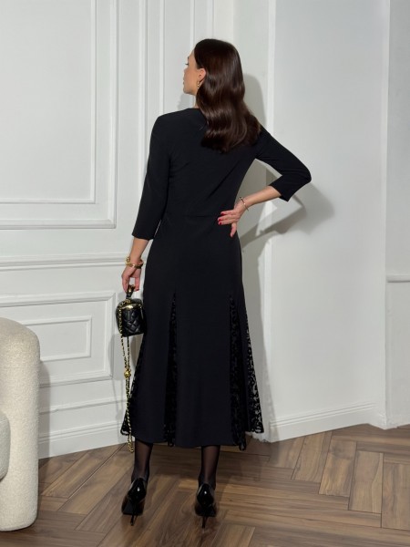 Нижняя часть платья спинки и переда с рельефами, в которые вставлены клинья из отделочной ткани.