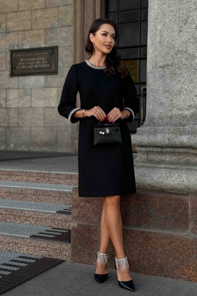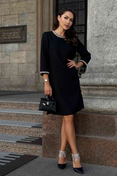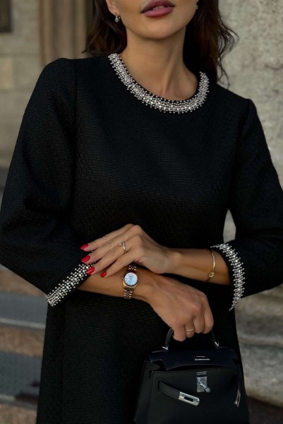 Стильное твидовое платье прямого силуэта — воплощение сдержанной элегантности и утонченного вкуса. Классический черный оттенок дополняется изысканной отделкой на манжетах и вырезе, что придает образу особую утонченность. Ткань с фактурным плетением подчеркивает качество и премиальность изделия. Удобная длина и свободный крой делают это платье идеальным выбором для деловых встреч, коктейлей или культурных мероприятий. Завершите ансамбль лаконичными аксессуарами и минималистичной обувью, чтобы создать гармоничный и благородный образ.
