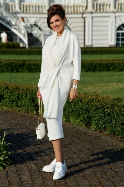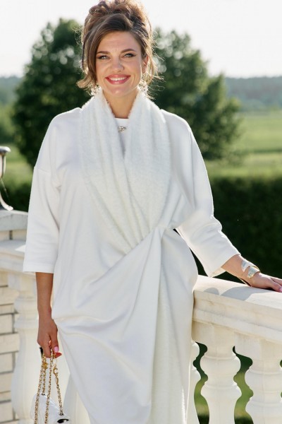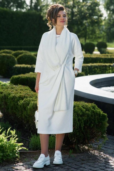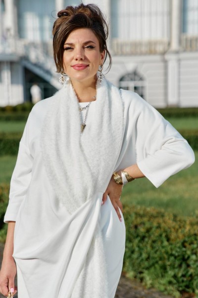 Если Вы ищете идеальное сочетание стиля и комфорта, вот идеальный выбор. Мы специально подобрали качественную и тактильно приятную ткань, которая хорошо держит свою форму, создавая ощущение легкости и свободы движения. Платье свободного силуэта, слегка заужается к низу, с округлой формой горловины, линия плеча спущенная. Главная интрига кроется в декоративной складке в подрезе по переду. Это тщательно продуманный декоративный элемент. Эта складка — свидетельство высокого искусства кройки; она добавляет глубину и динамику лаконичному фасону, создавая иллюзию движения даже в неподвижности. Спинка в платье со средним швом. Рукав в платье втачной, длиной 7/8. Но кульминацией образа становится отдельный декоративный элемент. Шарф, идущий в комплекте, драпируется на шее, являясь частью наряда. Он создаёт завершающий образ. Вместе с платьем они создают диалог текстуры и формы, тем самым завершая образ. Гладкое, платье служит идеальным холстом для струящейся драпировки шарфа.