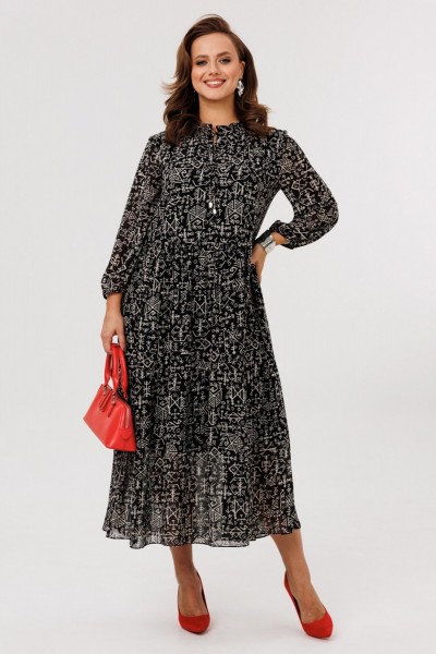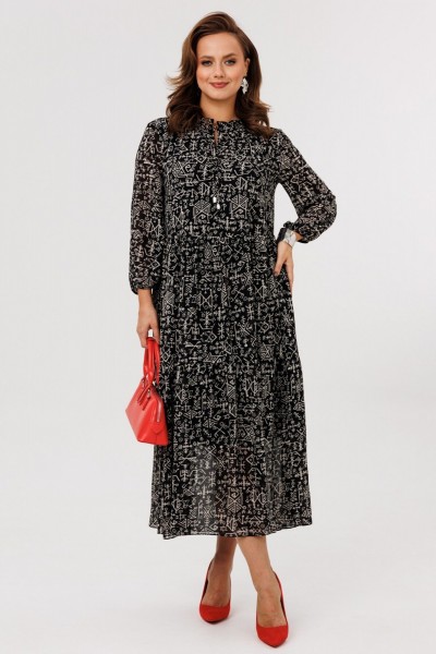 Стильное женское платье свободного силуэта, выполнено из плательной шифоновой ткани (не тянется) с дизайном «Геометрия», на подкладке (тянется).