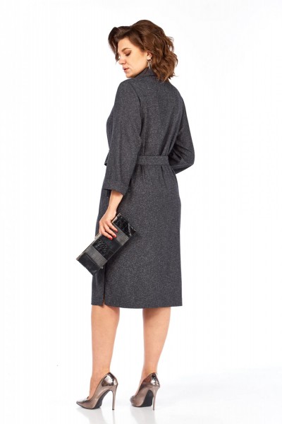 Платье женское прямого силуэта, изготовлено из плательной ткани. По переду нагрудные вытачки и фигурные подрезы с карманами в швах. Горловина оформлена планками с декоративной вышивкой и пуговицами, воротник стояче-отложной. На талии декоративные шлевки и съемный пояс с пряжкой. По спинке кокетка и средний шов. В боковых швах внизу обработаны шлицы декорированы пуговицами.