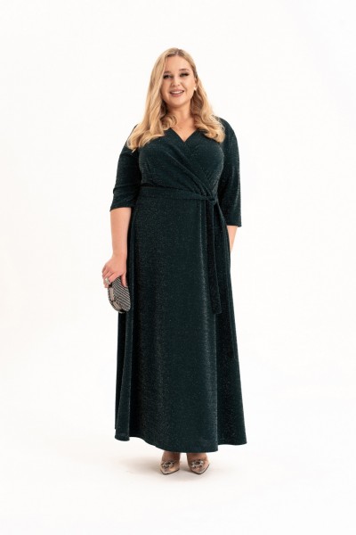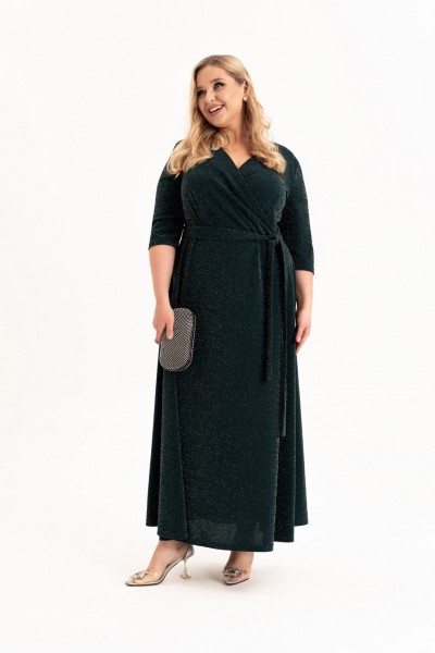 Нарядное платье на запах - это элегантный выбор для любой женщины, подростка или девушки, идеальное сочетание стиля и комфорта. Длинное вечернее платье сочного изумрудного цвета из стрейчевого трикотажного полотна с люрексом. Ткань мягкая, очень приятная к телу. Верхняя часть платья переда и спинки отрезные по линии талии. Лиф переда с эффектным запахом и рельефным бочком. Нижняя часть платья расширена к низу. Рукав втачной, длиной ¾. Платье со съёмным поясом. Съемный пояс и закрытые плечи выгодно подчеркивают женственность фигуры, а рукава длиной три четверти и пикантный V-образный вырез добавляют неповторимости вашему образу. Выполненное из премиальной ткани с блеском, платье представлено в различных размерах. Это универсальное платье подойдет для любого случая: будь то деловая встреча, вечерняя прогулка или особенный праздник. Тренд сезона 2025-2026года. Его можно носить в любое время года, от весны до зимы. Внимание к деталям и трендовый дизайн делают его идеальным выбором для множества мероприятий, включая свадебные фотосессии, ресторанные посиделки или корпоративные вечера. Платье нарядно, кокетливо и подходит как высоким, так и невысоким девушкам. Независимо от вашего стиля или сезона, наше платье будет идеальным выбором.