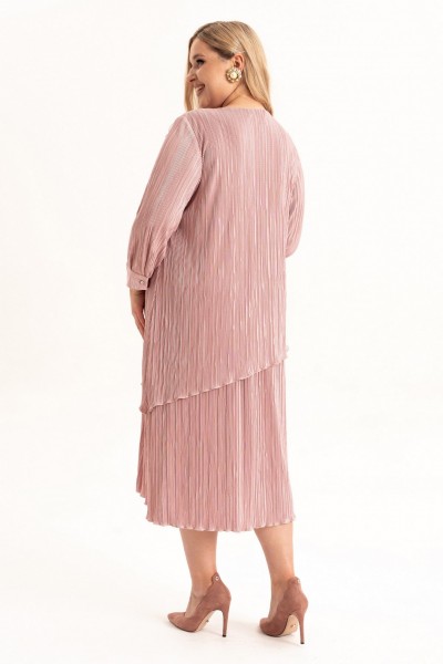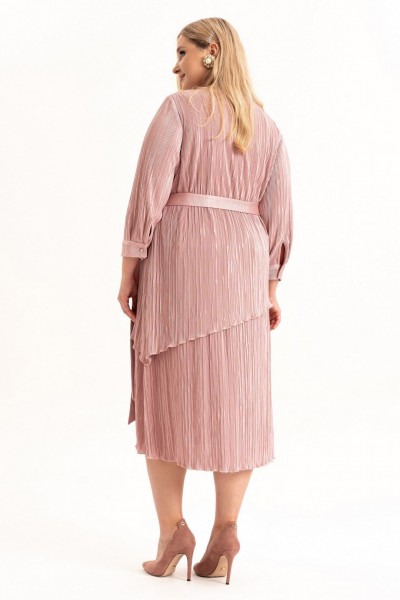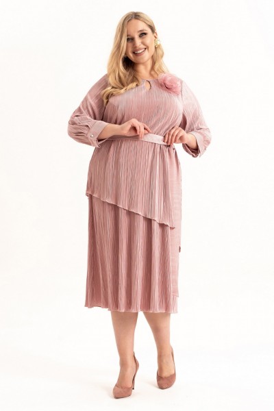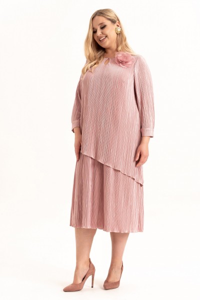 Это итальянское платье- имитация костюма нарядного стиля больших размеров станет отличным выбором для тех, кто ценит элегантность и стиль. Платье сочетает в себе комфорт и долговечность. Ткань "плиссе" придает изделию оригинальную рельефную текстуру, которая делает его особенно привлекательным. Основная особенность этого платья — силуэт в виде трапеции, который подходит для разных типов фигур, а также каплевидный декор по горловине полочки. Длина юбки — миди. Платье предназначено для женщин плюс сайз и станет идеальным выбором для вечерних мероприятий, новогодних праздников, свадеб или юбилеев. Благодаря универсальному дизайну ее можно сочетать с различными нарядами. Это отличный подарок для жены, мамы, сестры или девушки. Платье украшено брошей-цветком и съемным поясом, которая добавляет элегантности и шарма, и ее можно заменить на другие аксессуары, адаптируя наряд под разные события и настроения. Легкая трикотажная подкладка делает его еще более комфортным, а рукава 3/4 и рубашечный манжет с застежкой на петлю и пуговицу делают платье подходящим для большинства женщин. Выбирая это платье больших размеров , Вы получаете не только стильное и элегантное платье, но и качественное удобное изделие, которое скрывает все неровности фигуры и будет Вашим верным спутником на любых праздниках. Длина изделия (см):118. Длина рукава (см):54