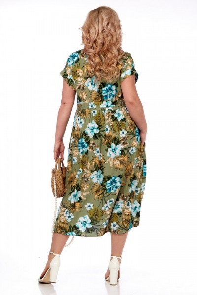Платье выполнено из мягкой штапельной ткани устойчивой окраски. Рекомендуется вертикальная сушка.