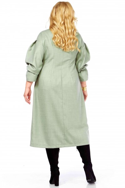 Игра акцентов и пропорций: Дизайн платья с двубортной застежкой и V-образным вырезом визуально стройнит силуэт и подчеркивает линию шеи. Рукава-фонарики добавляют нотку романтики и ретро-шика, а золотистые пуговицы – это яркий акцент, привлекающий внимание и добавляющий образу изысканности.