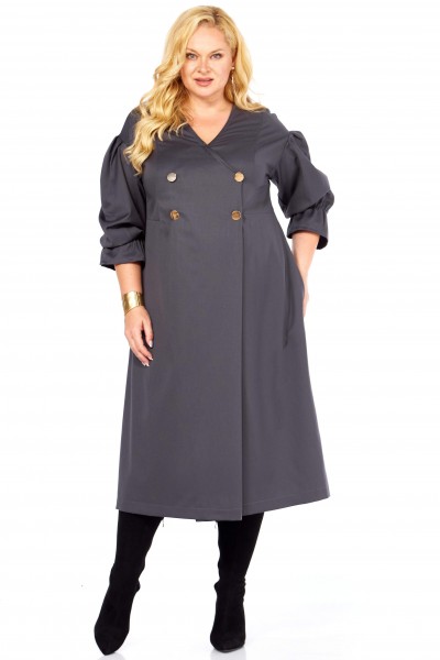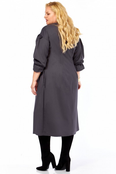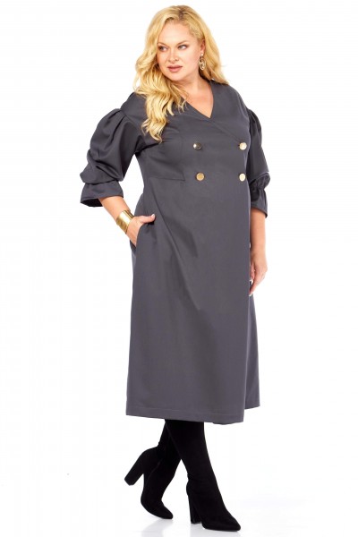 Игра акцентов и пропорций: Дизайн платья с двубортной застежкой и V-образным вырезом визуально стройнит силуэт и подчеркивает линию шеи. Рукава-фонарики добавляют нотку романтики и ретро-шика, а золотистые пуговицы – это яркий акцент, привлекающий внимание и добавляющий образу изысканности.