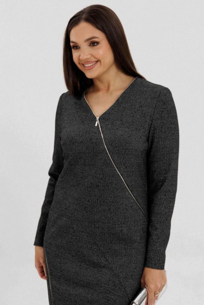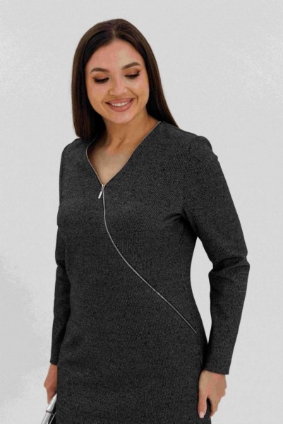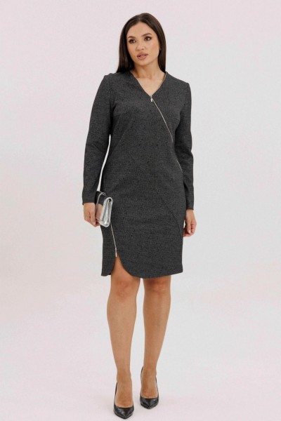 Стильное платье полуприлегающего силуэта втачного покроя создано для женщин, которые ценят комфорт и элегантность. Модель выполнена из мягкого трикотажного полотна с едва заметным вкраплением люрекса, что придаёт образу утончённое сияние и делает платье уместным как днём, так и вечером.