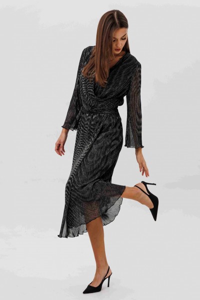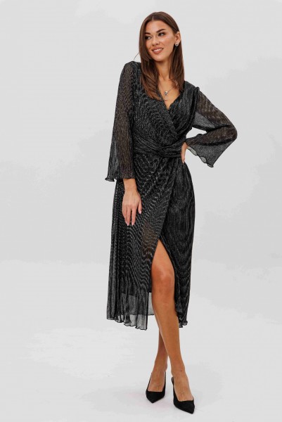 Женственный силуэт, подчеркивающий линию талии, и невероятная фактура гофрированного полотна делают эту модель не только изысканно-красивой, но и мега удобной.