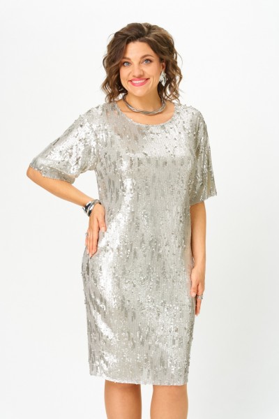 Нарядное платье из пайеток, свободного покроя. Горловина платья округлой формы на обтачке, полочка и спинка свободного покроя. Рукав втачной, укороченный, выполнен из пайеток. Простое в исполнении, но выполненное из эффектной ткани прекрасно дополнит ваш образ!
