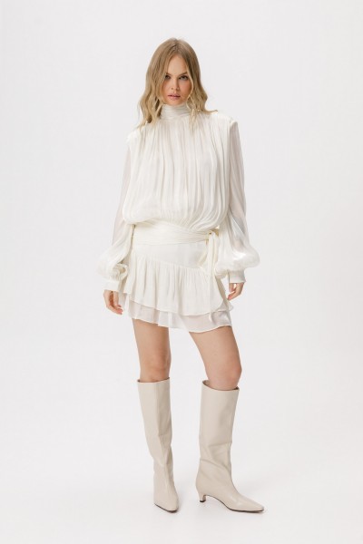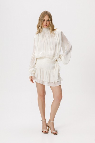 Платье-мини со съёмными шортами из фактурной полупрозрачной ткани.