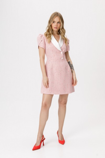 Мини платье из фактурной ткани с рукавом «фонариком».