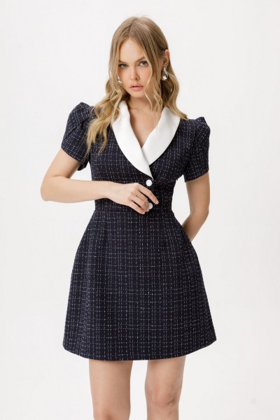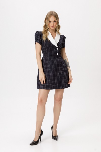 Мини платье из фактурной ткани с рукавом «фонариком».
