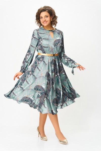Цвет: Принт «тропические листья в светло-бирюзовых и тёмных оттенках»