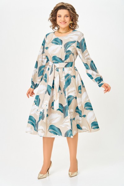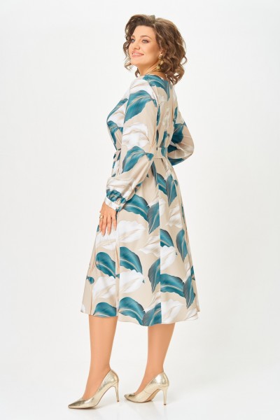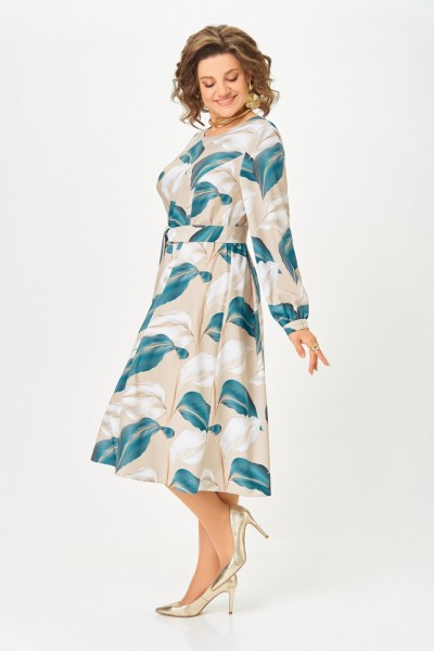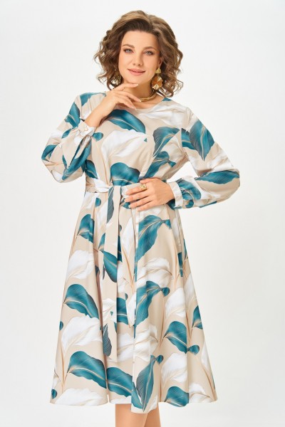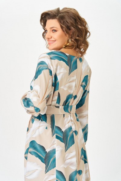 Цвет: Бежевый принт «ярко-голубые и белые листья»