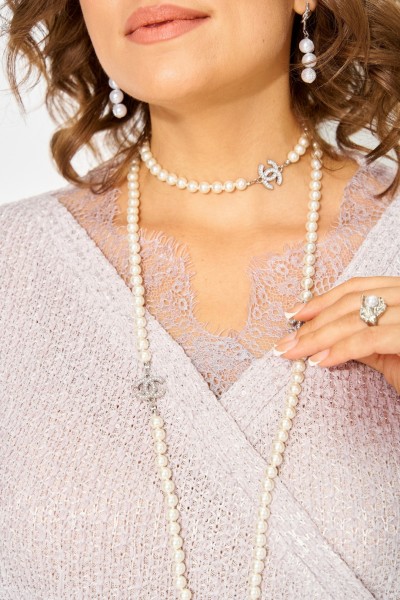 Вязанный жемчужно-лиловый джемпер с ажуром по вороту - это идеальный вариант для создания стильного и привлекательного романтического образа! Мягкий и нежный материал этого джемпера делает его очень приятным на ощупь, теплым и уютным, а легкое мерцание придает свою изюминку. Горловина v-образной формы приковывает взгляды к линии декольте. Рукав длинный, на спущенной линии плеча. Низ рукава, а также низ изделия оформлен мягкой трикотажной манжетой. Особенно актуальна данная кофточка на осенний и зимний период, за счет качественного состава, не пропускает холод обеспечивает тепло и комфорт! Длина по спинке – 65 см, рукав – 62 см.