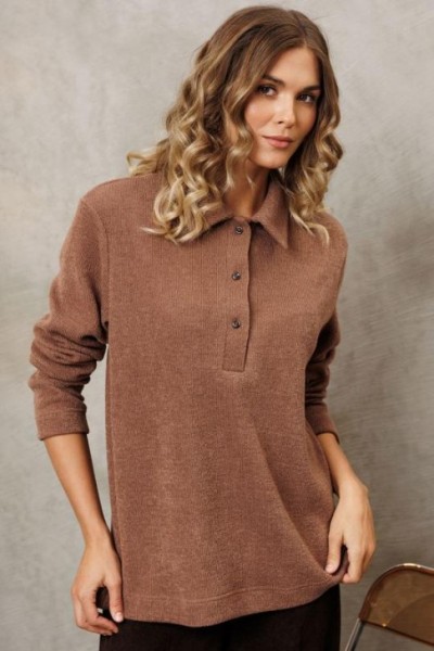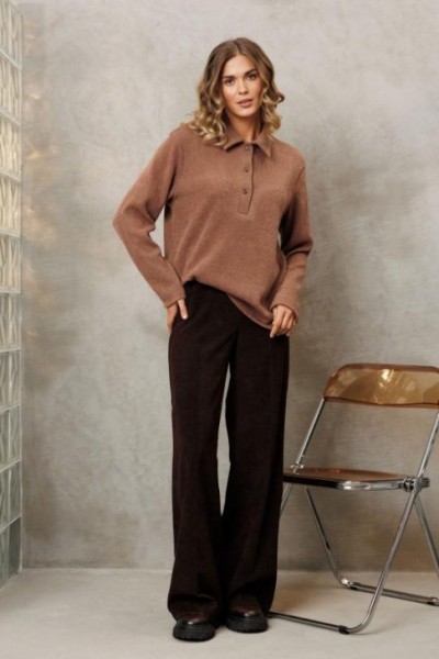 Джемпер прямого силуэта с воротником поло из теплого трикотажного полотна. Рукав втачной одношовный.