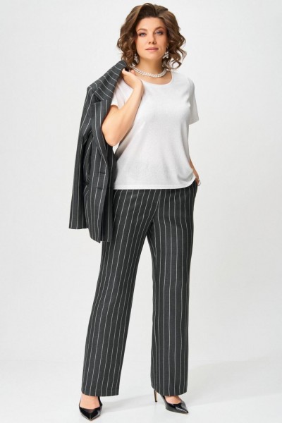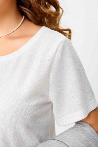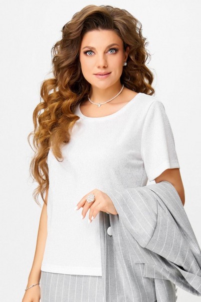 Джемпер "Веяна" — сияние мягкости. Легкая трикотажная ткань, украшенная люрексовой нитью, словно ловит свет и отражает его мягким блеском. Прямой силуэт с вытачками подчёркивает фигуру, а комфортная изнанка дарит ощущение нежности на коже. Финишные акценты — тонкая планка горловины и утончённая обработка низа — делают образ завершённым.