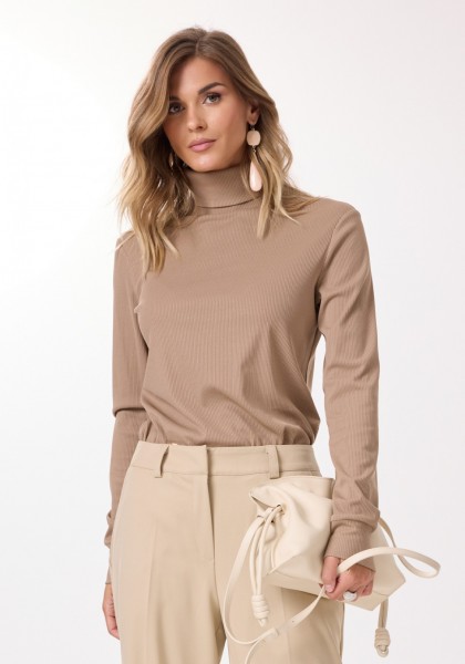 Джемпер прямого силуэта, выполнен из 100% вискозы. Перед и спинка цельнокроенная. Рукав длинный. Горловина типа "водолазка". Длина изделия - середина бедра.