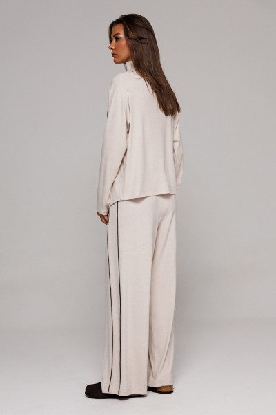 Джемпер из трикотажного полотна с велюровым эффектом прямого силуэта со спущенной линией плеча. Рукав втачной. По переду печать "Лошадь" и нашивка с гравировкой "BUTER". Низ джемпера по переду фигурный ассиметричный. Внизу по правому боковому шву обработан разрез. Воротник-стойка цельнокроеный.