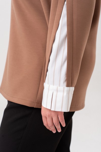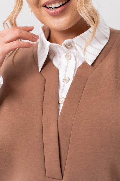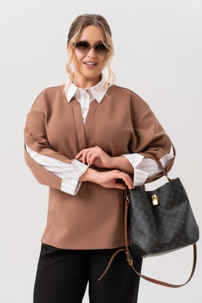 Практичный и удобный – он станет Вашей любимой туникой, а трендовый дизайн делает его актуальным решением для девушек, которые следят за модой. Свитшот женский с имитацией рубашки- новинка коллекции. Изготовленный из качественного трикотажа и полоски на х/б основе, он обеспечивает дышащие свойства и гипоаллергенность, что особенно важно для женщин с чувствительной кожей. Подходит на осень, весну и для зимы. Ткань необычайно мягкая и приятная к телу. Свободный оверсайз крой изумительно подойдет для девушек и женщин больших размеров. На свитшоте обработан воротник и застежка –планка на петли и пуговицы. Рукав комбинирован из двух тканей, с манжетой и разрезом. Модель подходит для высоких и для невысоких. Такая модель должна быть в каждом гардеробе.