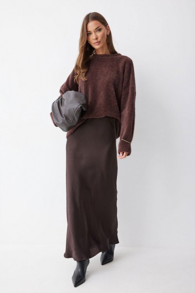 Джемпер прямого силуэта из трикотажного полотна. Горловина округлая. Рукав со спущенной линией плеча.