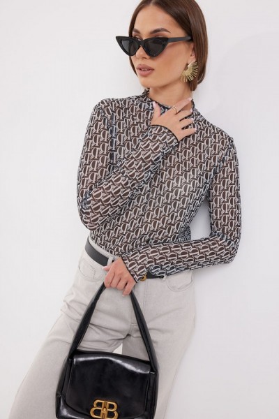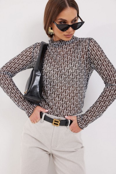 Джемпер прилегающего силуэта из трикотажного полотна «сетка». Рукав длинный. Горловина с цельнокроенной стойкой.