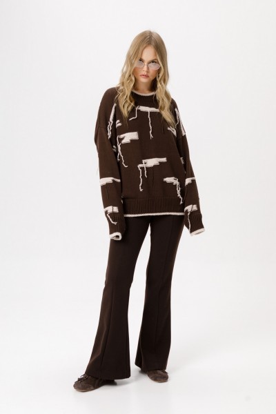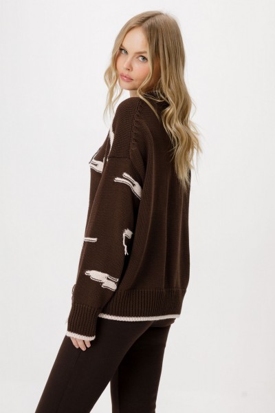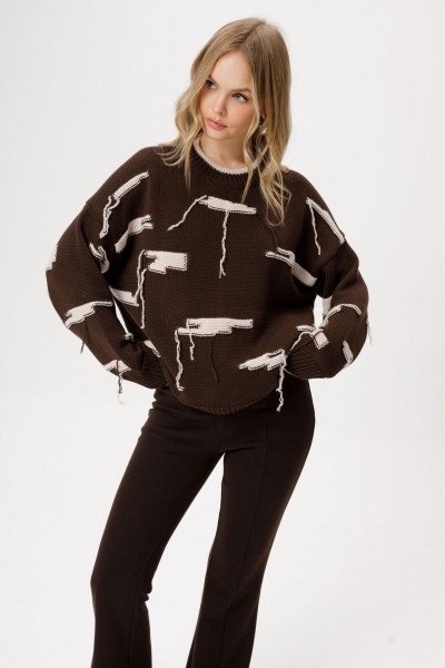 Вязаный свободный джемпер из хлопковой пряжи с декоративными элементами.