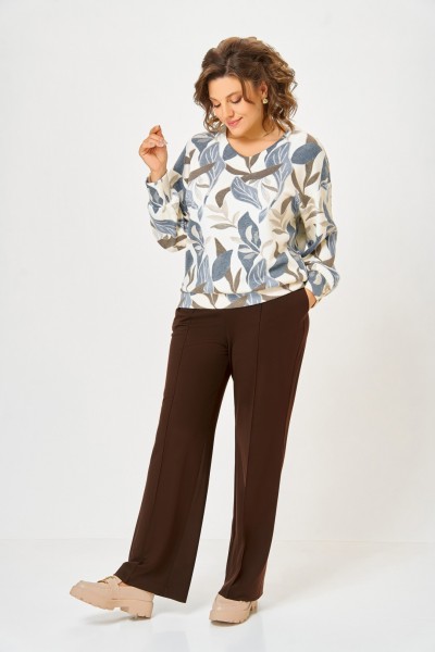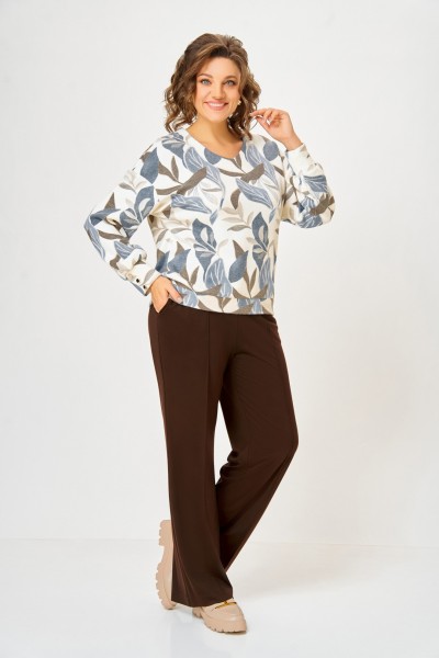 Цвет: Молочный, принт «листья в бежево-голубых тонах»