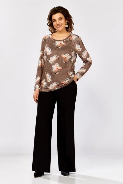 Цвет: Капучино, Принт серо-оранжевые цветы