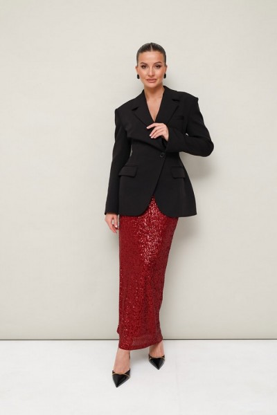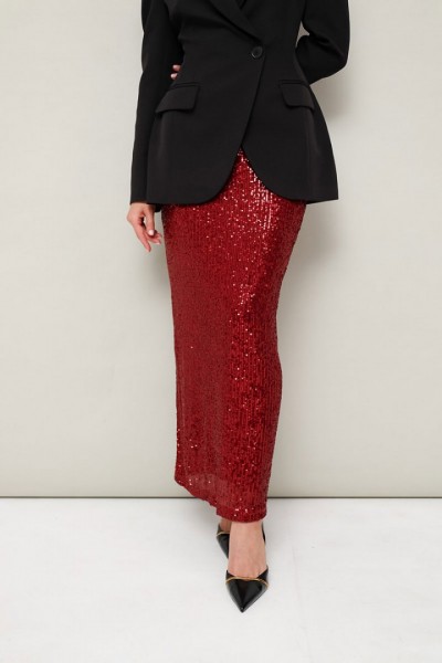 Юбка, декорированная пайетками, на подкладке. Пояс на резинке, хорошо тянется. Юбка прямого полуприлегающего силуэта.