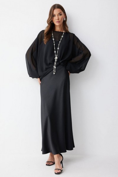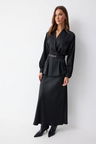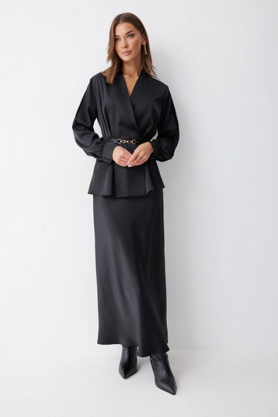 Юбка полуприлегающего силуэта расширенная книзу из струящейся ткани. Юбка с резинкой по линии талии.