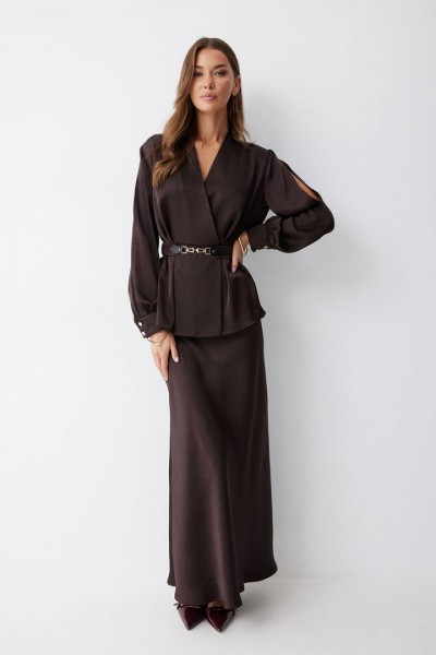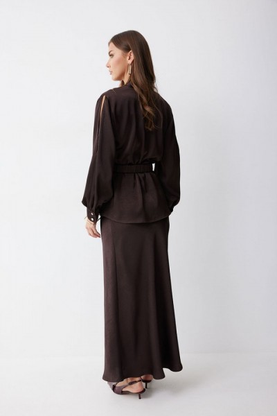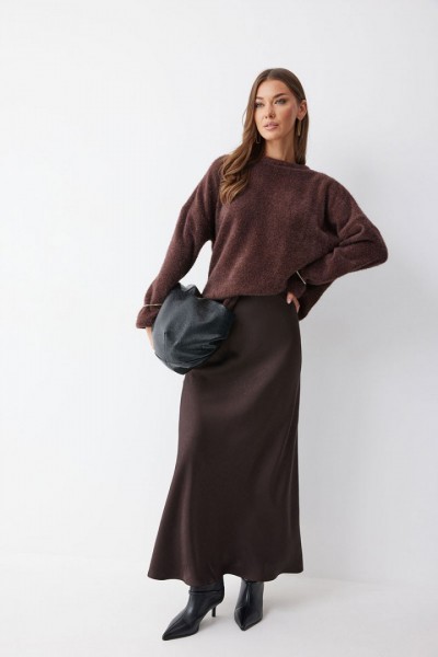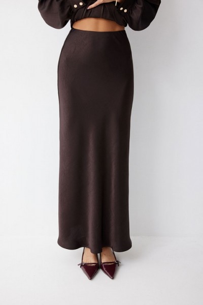 Юбка полуприлегающего силуэта расширенная книзу из струящейся ткани. Юбка с резинкой по линии талии.