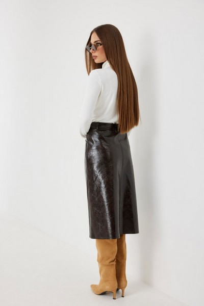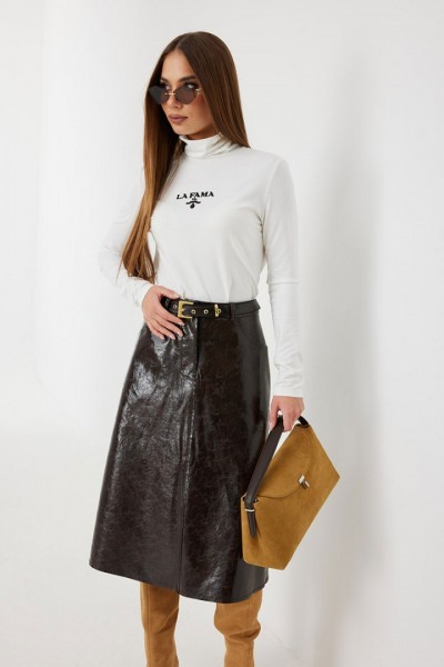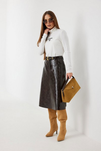 Юбка женская из трендовой фактурной экокожи на подкладке, длиной чуть ниже колена, пояс