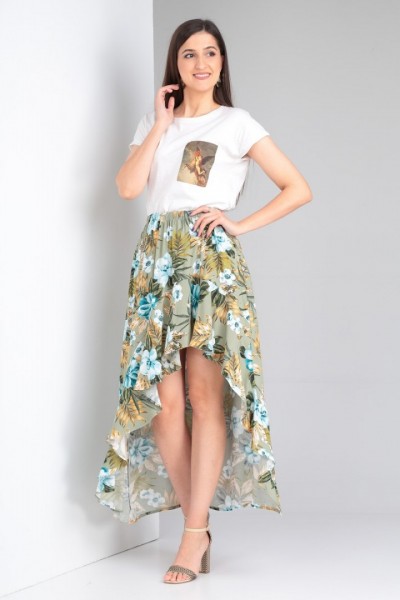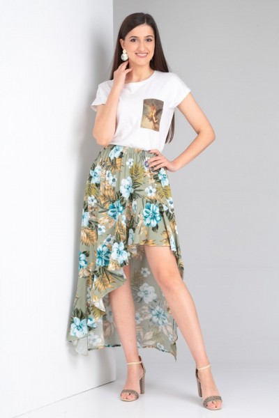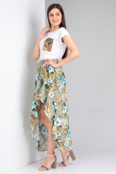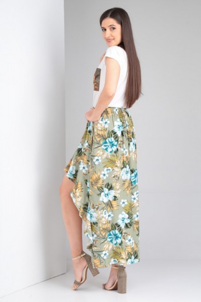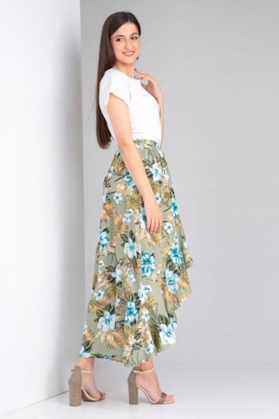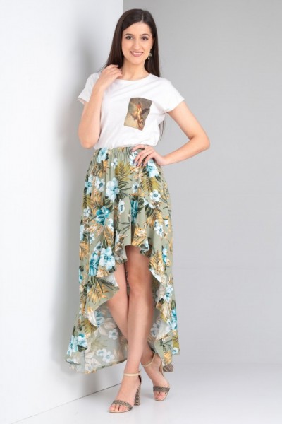 Юбка выполнена из мягкой штапельной ткани устойчивой окраски.